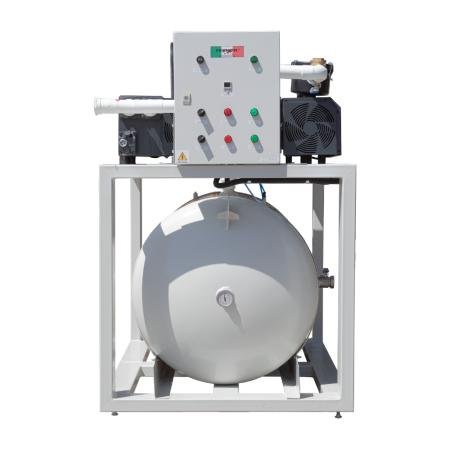 Su tanque de 1000 litros permite una adecuada acumulación de vacío, reduciendo significativamente los ciclos de arranque y optimizando el consumo energético. La configuración tríplex asegura continuidad en la operación, incluso durante mantenimientos o fallas en alguna de las unidades, garantizando un suministro constante de vacío.