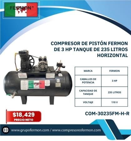 COMPRESOR DE PISTÓN FERMON DE 3 HP TANQUE DE 235 LITROS HORIZONTAL