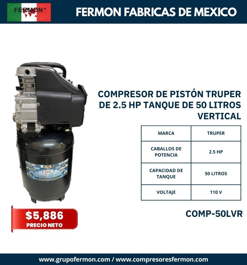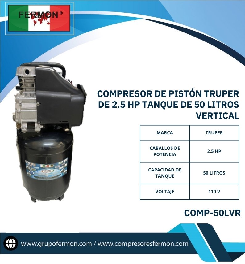 COMPRESOR DE PISTÓN TRUPER DE 2.5 HP TANQUE DE 50 LTS V