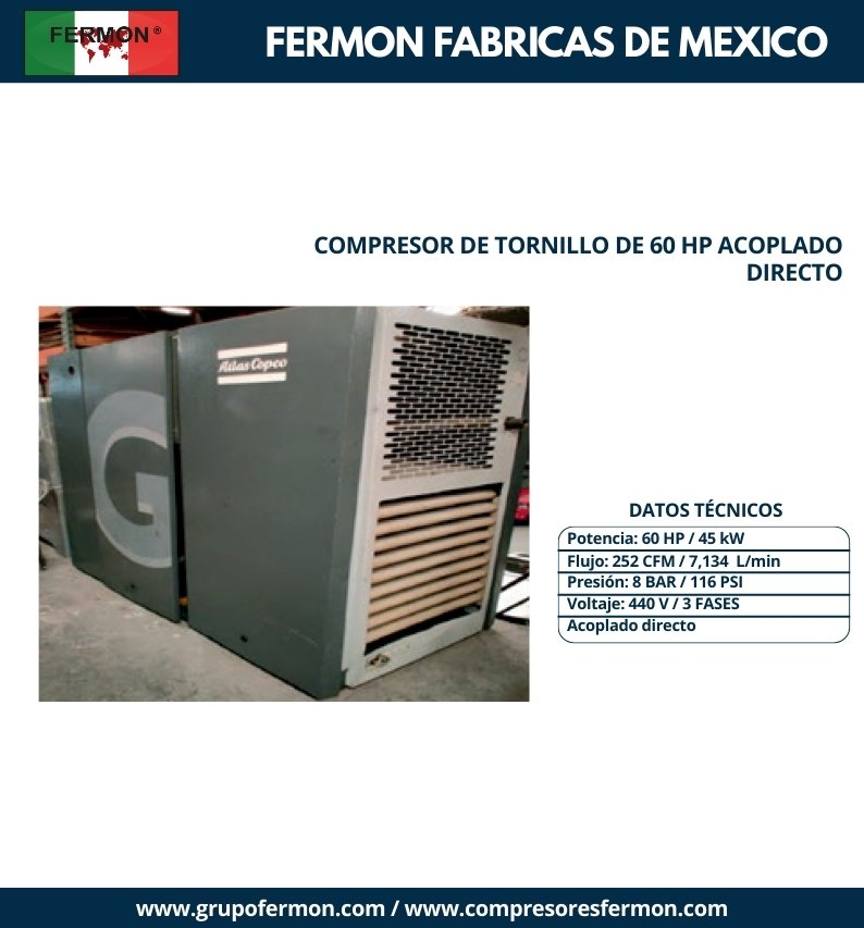 COMPRESOR DE TORNILLO DE 60 HP ACOPLADO DIRECTO
