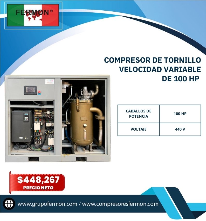 COMPRESOR DE TORNILLO VELOCIDAD VARIABLE DE 100 HP